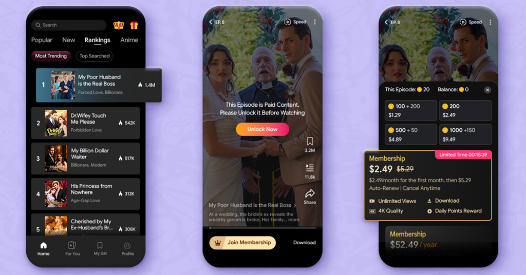 Microdrama streaming apps come with monetization models that feel natural to the format.