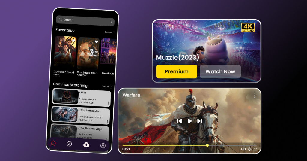 With a VOD streaming platform, users can explore a diverse spectrum of content genres, like movies, TV shows, documentaries, and educational videos — everything in one place.
